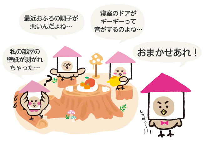 うちラクキャラクター うちラクキャラクター|小さな体で大きな家をつくる鳥ハタオリ