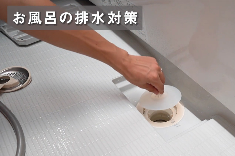 シリコン素材の蓋を使って、排水口から水が抜けないように対策