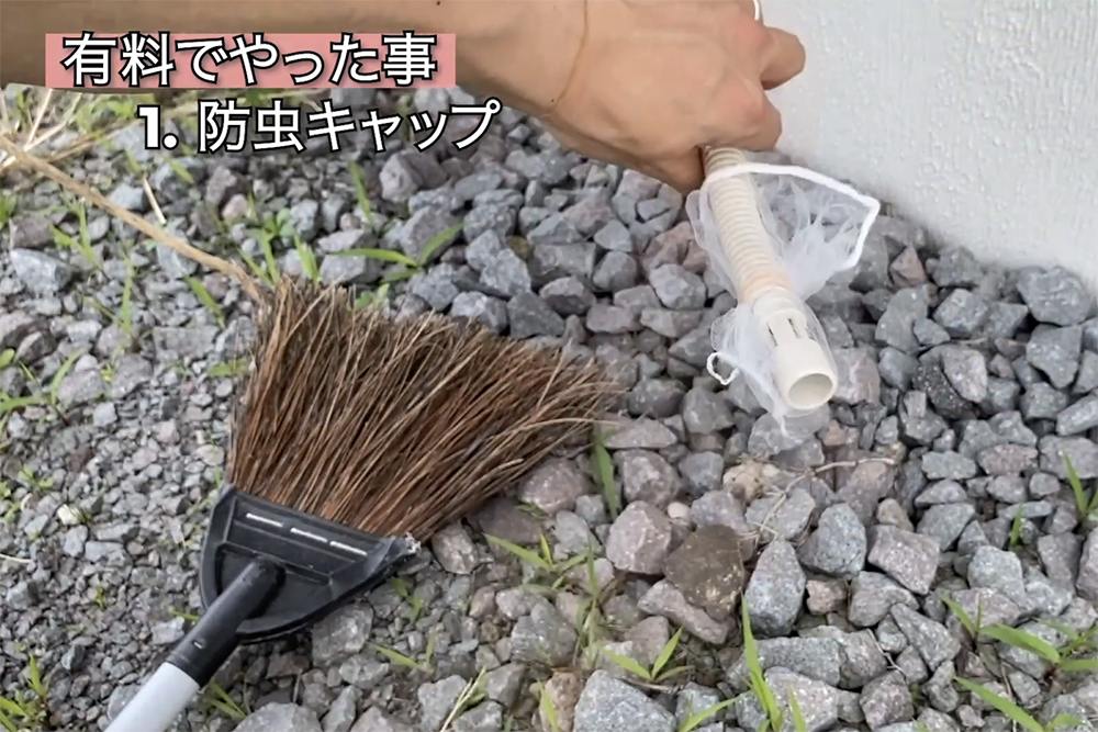 エアコンの排水ホースに取り付ける防虫キャップの上からさらに排水溝ネットを被せることで、より強力な虫対策に。