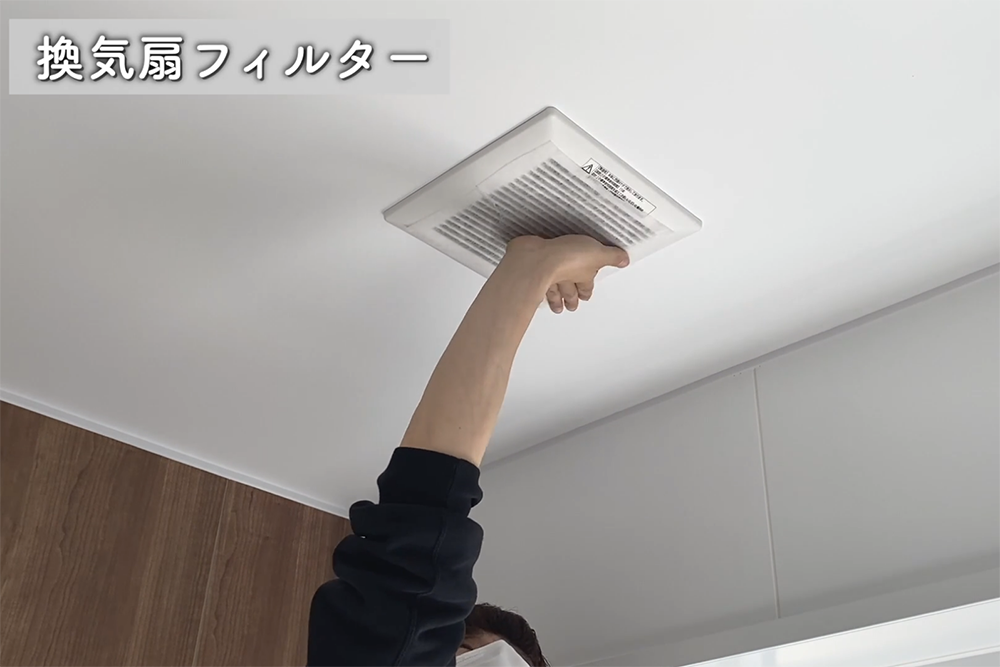 浴室換気扇のフィルターは、換気扇カバーに貼り付けるタイプのシートを使うと取り替えが簡単。