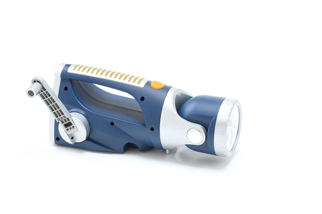 災害用ライトとしては、手回し充電できるタイプが市販されています。ハンドルを回す動作で発電しながら半永久的に使えるため、長時間電気が使えないような状況では重宝しそうです。