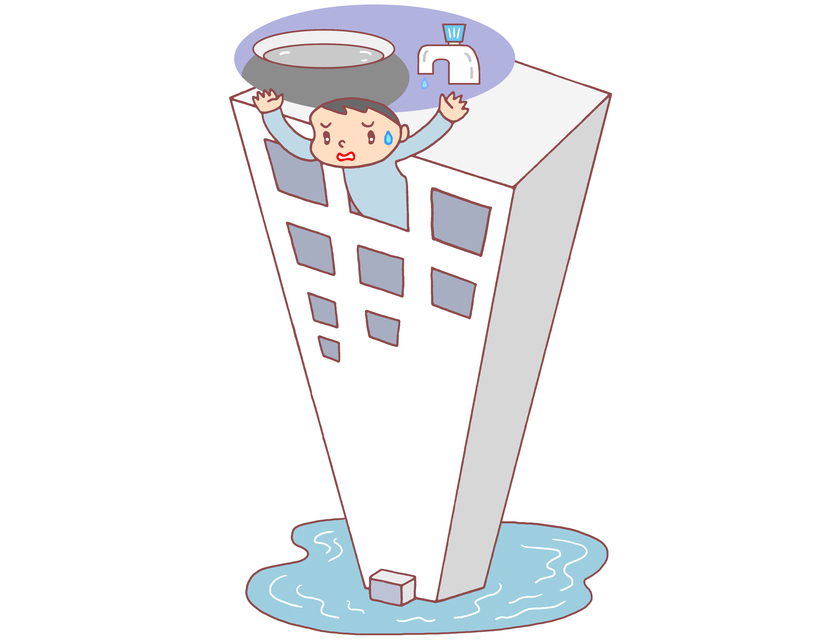 地震などによって配管や給水設備に不具合が生じると、下のほうの階の住人にはまったく影響が出ていないのに、上のほうの階で水道が使えなくなるといった事態も起こり得ます。