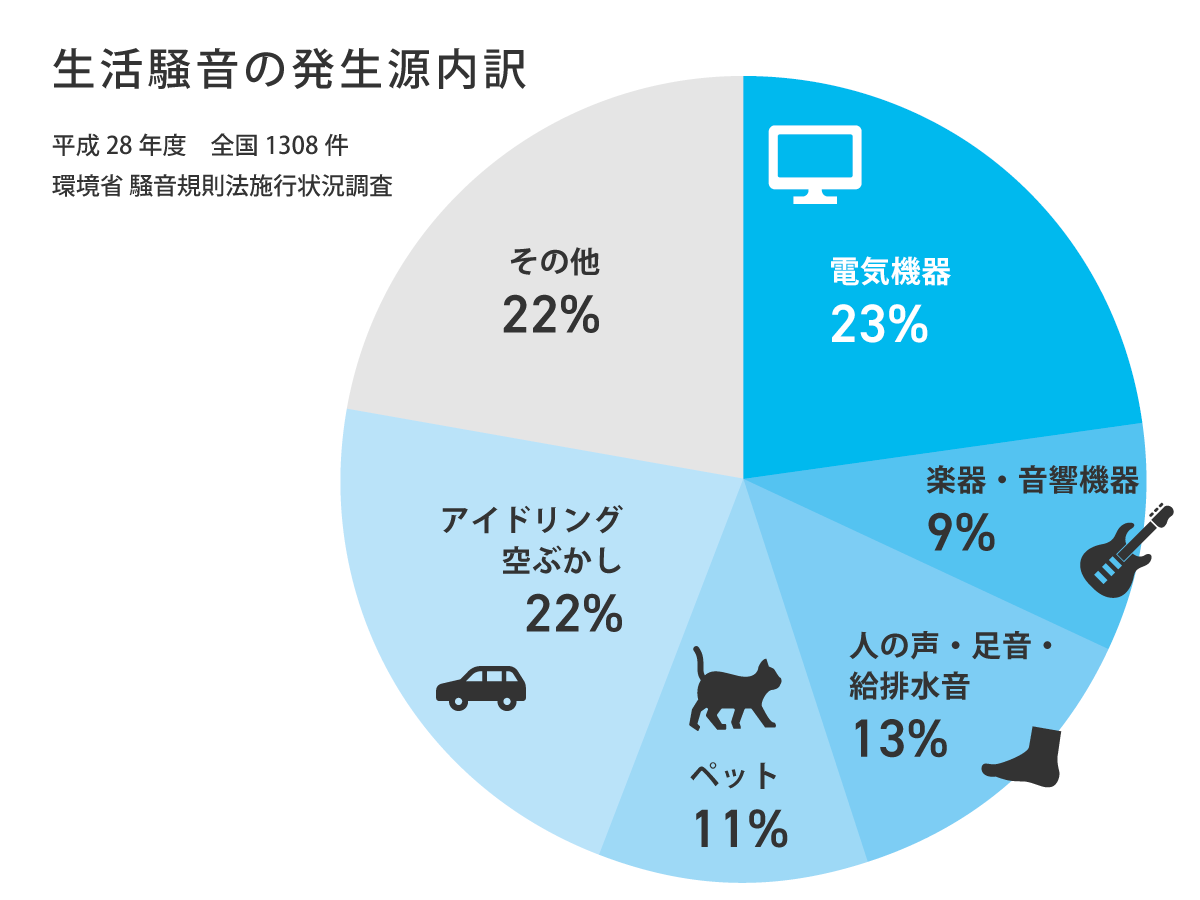 食事や掃除、入浴、会話など、毎日の暮らしの中で発生する音。特に住宅や住戸まわりで発生する音は、生活騒音と呼ばれています。