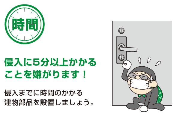 「二つ目は、『時間』による侵入防止。つまり、建物への侵入までに時間がかかる状態にしておくことが重要です。多くの住宅侵入盗は、5分以上かかる場合、侵入をあきらめるといわれています」