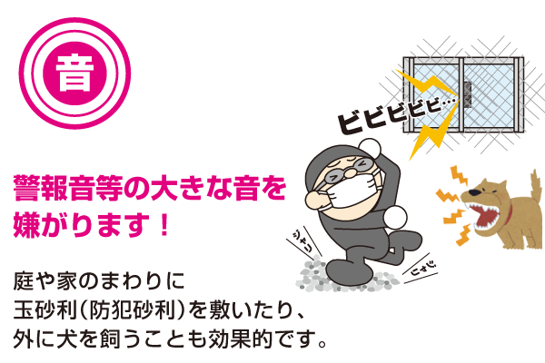 「まず一つ目は、『音』による侵入防止。住宅侵入盗は警報音などの大きな音を嫌がりますから、音の効果で侵入をあきらめさせることが可能です」