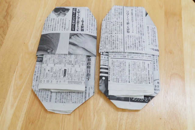 あくまでも代用品ですが、知っておくとよいのが「新聞紙スリッパ」です。