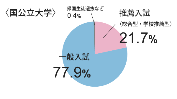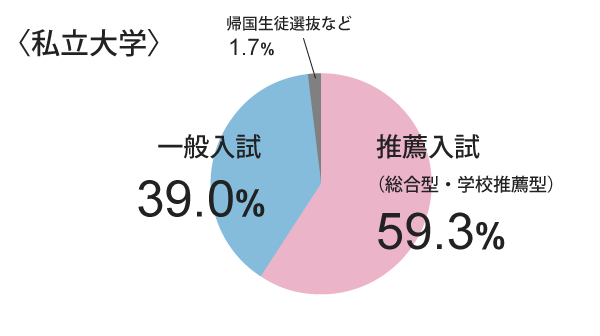 大学入学者は、推薦が増加。 大学によってさまざまな受験制度があるので、保護者も一緒に調べてみて。