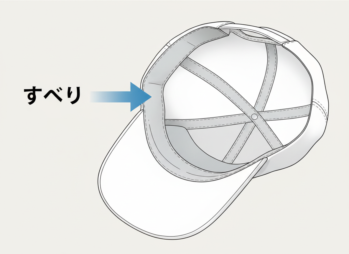 ▲帽子の内側にある“すべり”のお手入れがポイント