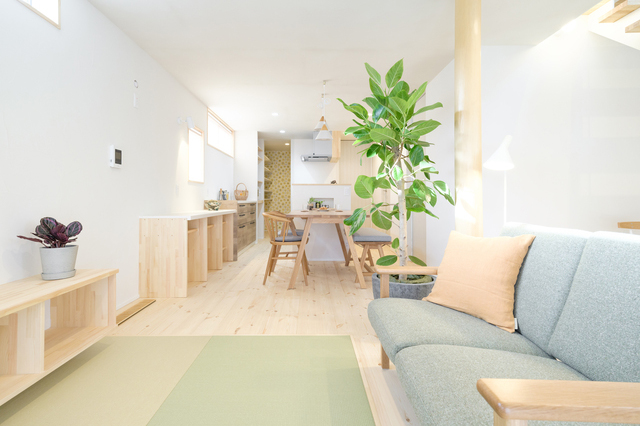 リビングとダイニング、キッチンが一体になったLDKの間取り。LDKの全体的な照明には、調光できるタイプを採用することが一般的になりつつあります。