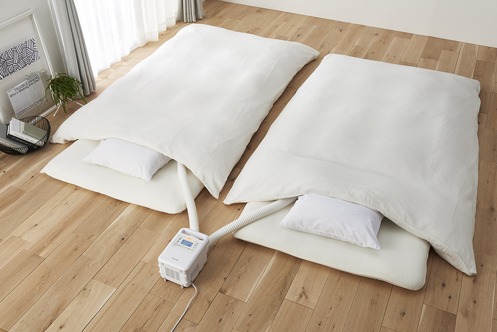 〈シャープ〉独自の技術「きのこアタッチメント」で、ダブルサイズの布団まで乾燥し、しっかり暖めてくれます。