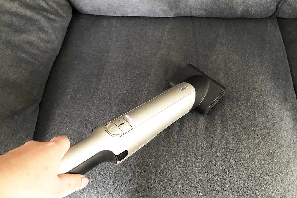 強力なモーターでさまざまな表面に密着する「ミニモーターヘッド」を装着すると、布団やソファー、マットレスなどのお手入れにも使えます。