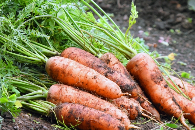 根が主食のニンジンは、緑黄色野菜。近年はミニニンジンの種など、プランターでも栽培しやすい品種が家庭菜園に人気です。