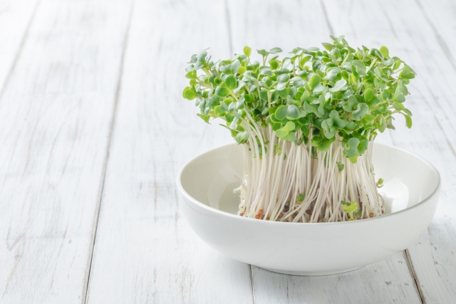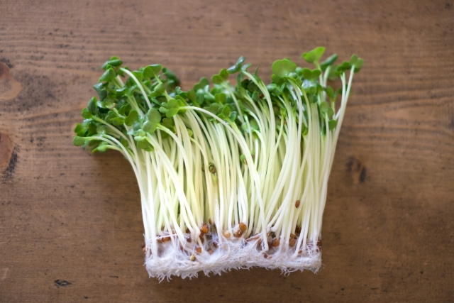 ワサビに似た辛さがあるので、和食にも合うスプラウトです。ビタミンCやβカロテン、老化予防になるビタミンEなどが含まれています。