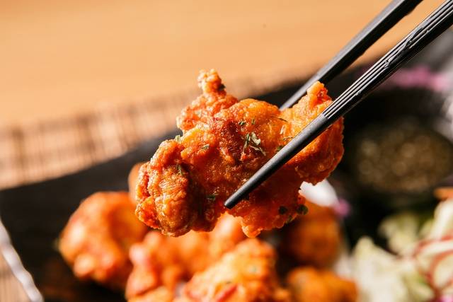 3.小麦粉と片栗粉を混ぜ合わせ、2で漬けてあったタコをまぶし油で揚げる。