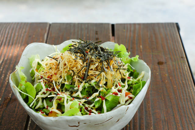カリカリのじゃこと、シャキシャキしたスプラウトが美味しいサラダです。食欲がないときにも、ペロッと食べられますよ。お好みでノリを散らしてもOKです!