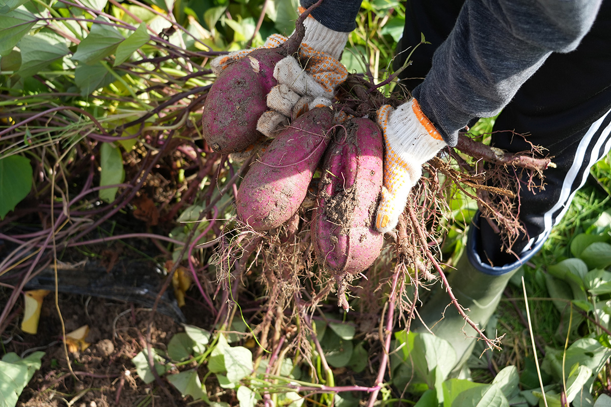 土の中で長く成長したさつまいもを傷つけないように慎重にスコップや手で掘りおこしますが、どんなに慎重にやってもスコップで傷つけてしまったり、途中で折れてしまったりしてしまいます。