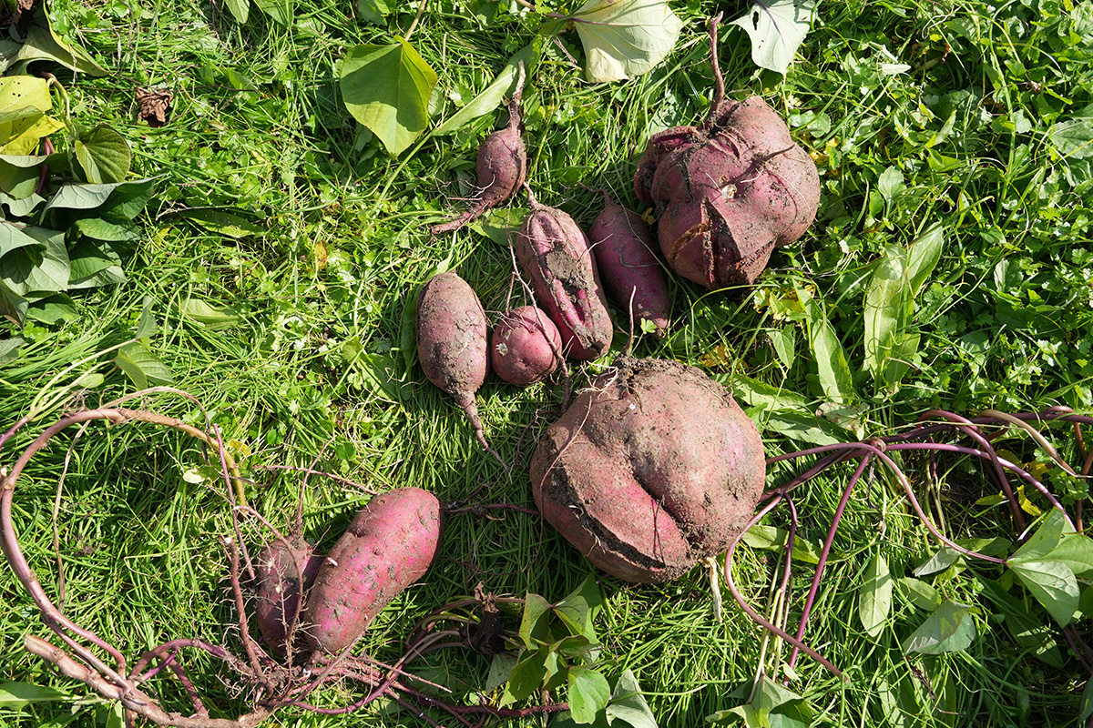 本来なら110〜120日で収穫しなければならなかったさつまいもですが、170日後の収穫となりツルが絡み合うように成長していました。