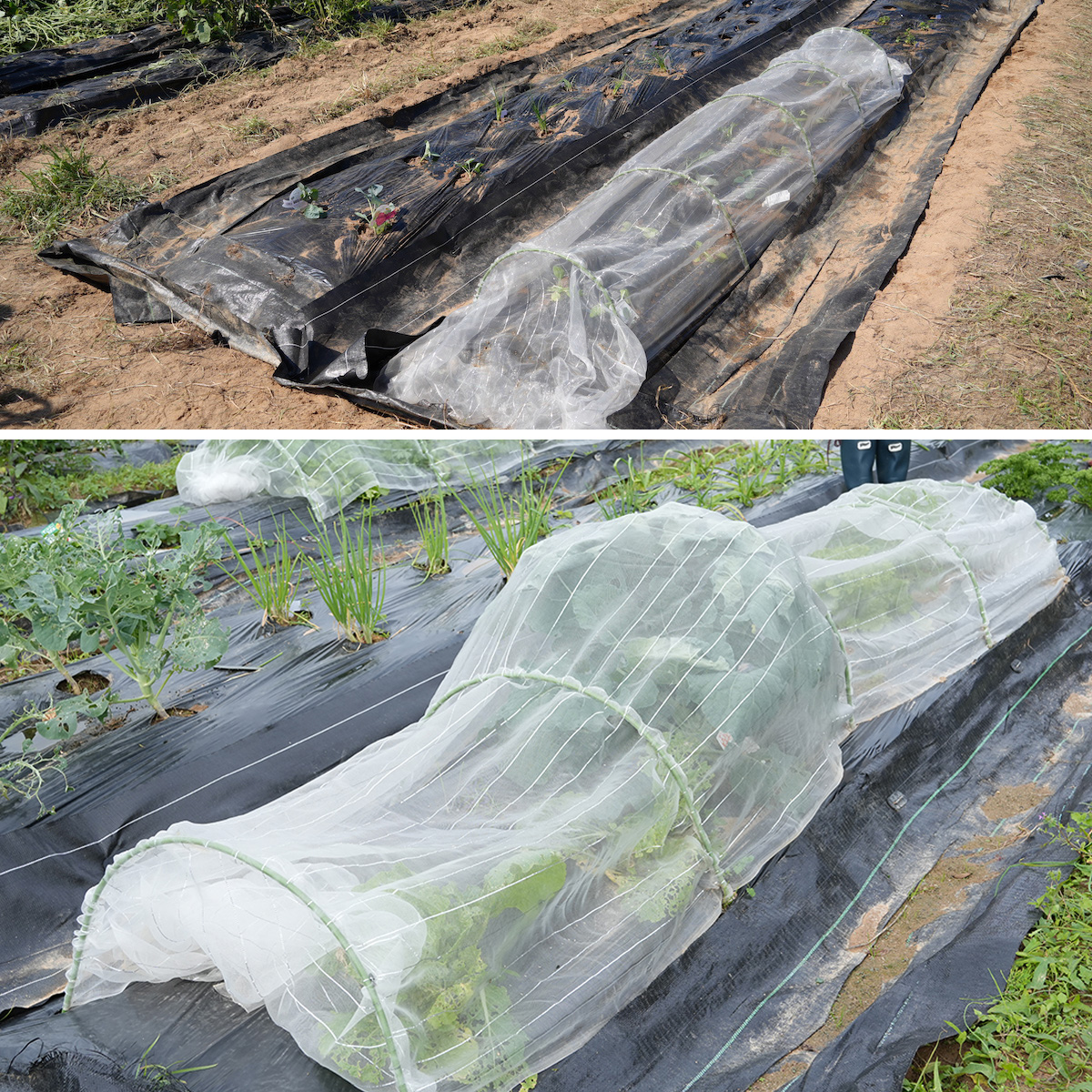 ▲上の写真が植え付け時、下の写真が約2ヶ月後の畑の様子