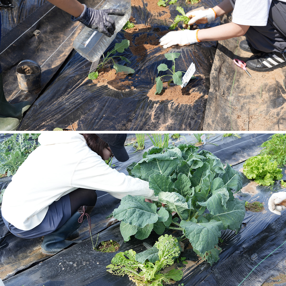 ▲上の写真が植え付け時、下の写真は約2ヶ月後の大きく成長したケール
