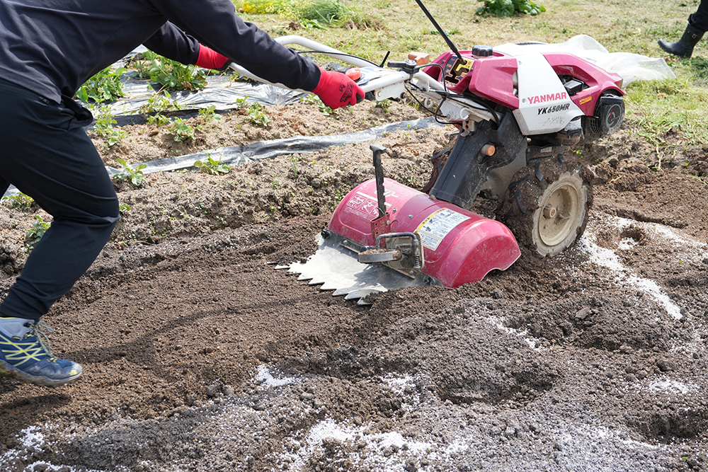 畑作業の前日に降った雨で水を含んだ土も、一度耕運機で耕したのと、太陽の暖かさで徐々に乾燥している状態に。