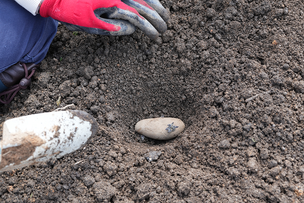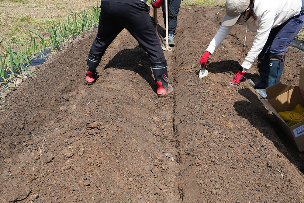 出てきた芽が5cm程度に伸びたら「芽かき」をしたり、「土寄せ」をしたり、これから草も生えてきやすい時期なので草取りをしたりと、植えたあとも様子を見に行く必要がありそうです。