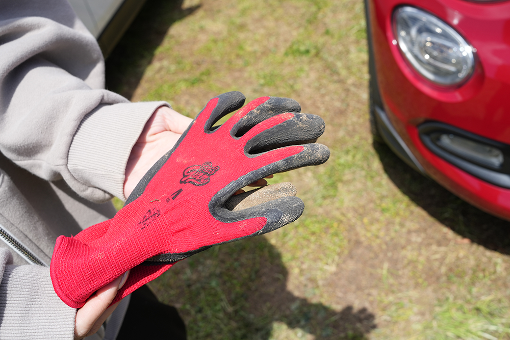 前回の畑作業では綿の軍手を使っていましたが、今回はゴム付きの軍手にしたところ大正解!