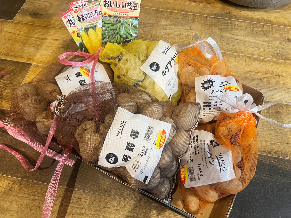 ホクホク感のある「男爵薯」、煮崩れしにくい「メークイン」、甘みの強い「キタアカリ」。どれも育ったら美味しい料理に使えるジャガイモばかりです。