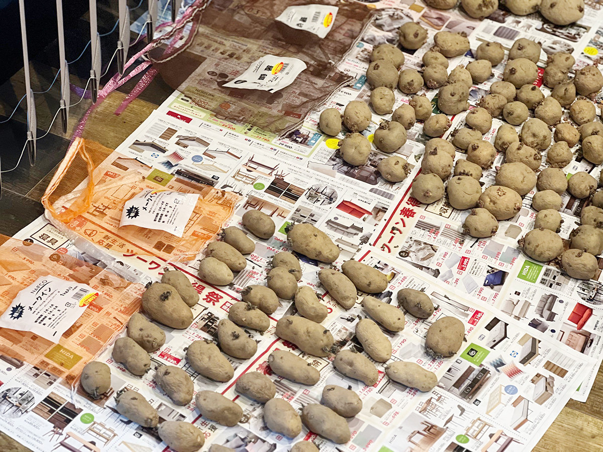 畑に植え付ける約3週間前に様々な品種の種イモを購入。