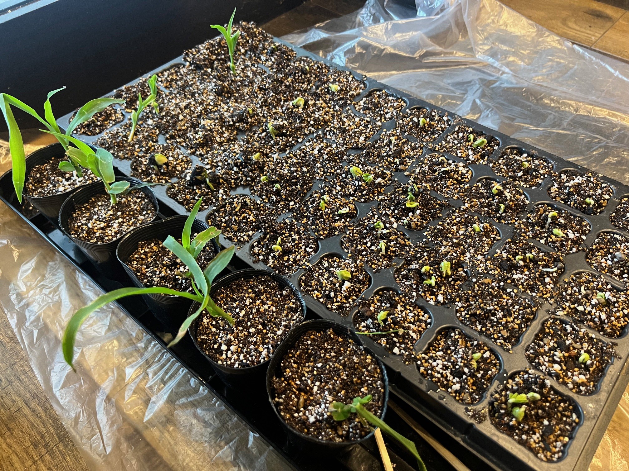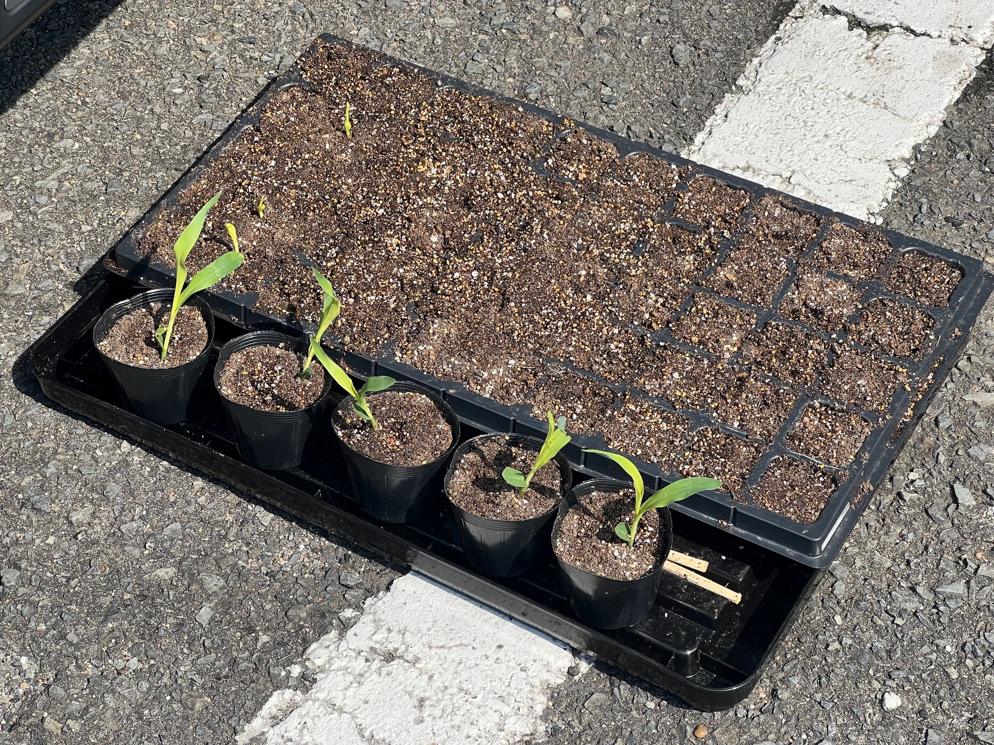 そろそろ苗として成長してきたので、トウモロコシ、オクラ、枝豆をうちラクファームの畑に植え付ける準備を始めます。
