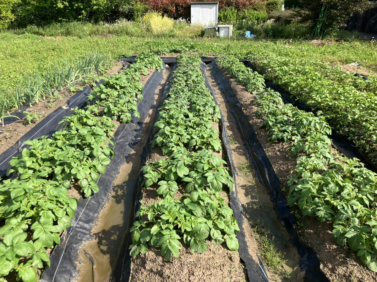 目に見えて成長していることに喜びを感じます。これが作物を育てることの喜びなのか、と実感しつつこれから順調に育てるには、ジャガイモから出てくる芽の数を2〜3本にとどめるよう間引く手入れ=芽かきと追肥が必要とのことで、ネットで調べながらチャレンジしてみます。