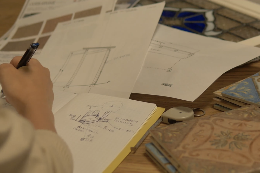 庭師さんに自分の理想の庭を伝えるためにイメージイラストや、こだわりの素材を用意。
