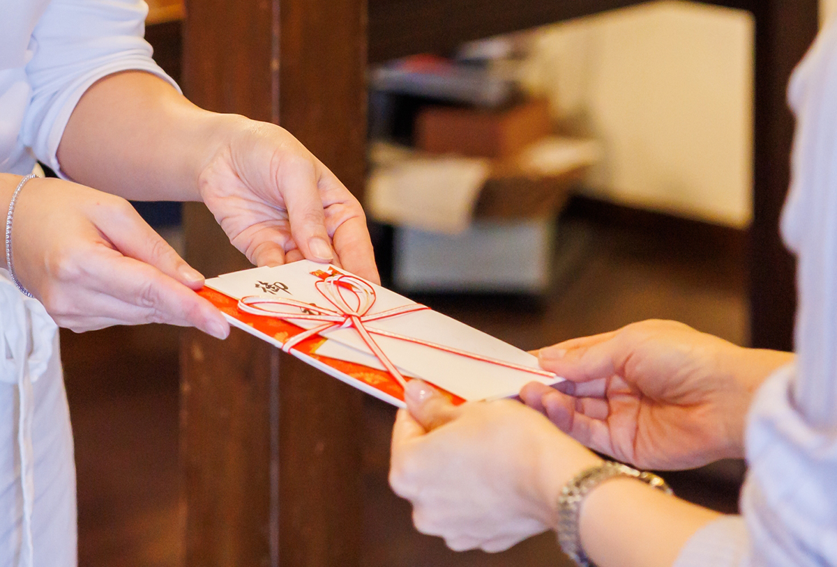 ▲ゲストとして参加する場合、あらかじめ会費制と言われなければお祝いや手土産を持参しましょう。ただし、目上の方へ現金を贈ることは避けます。
