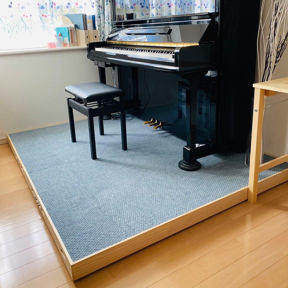 ピアノやドラムなどの振動を伴う楽器の下に敷き込むだけで床への音漏れと振動を軽減できる「ピアノ・ドラムステージ」という商品もあります。