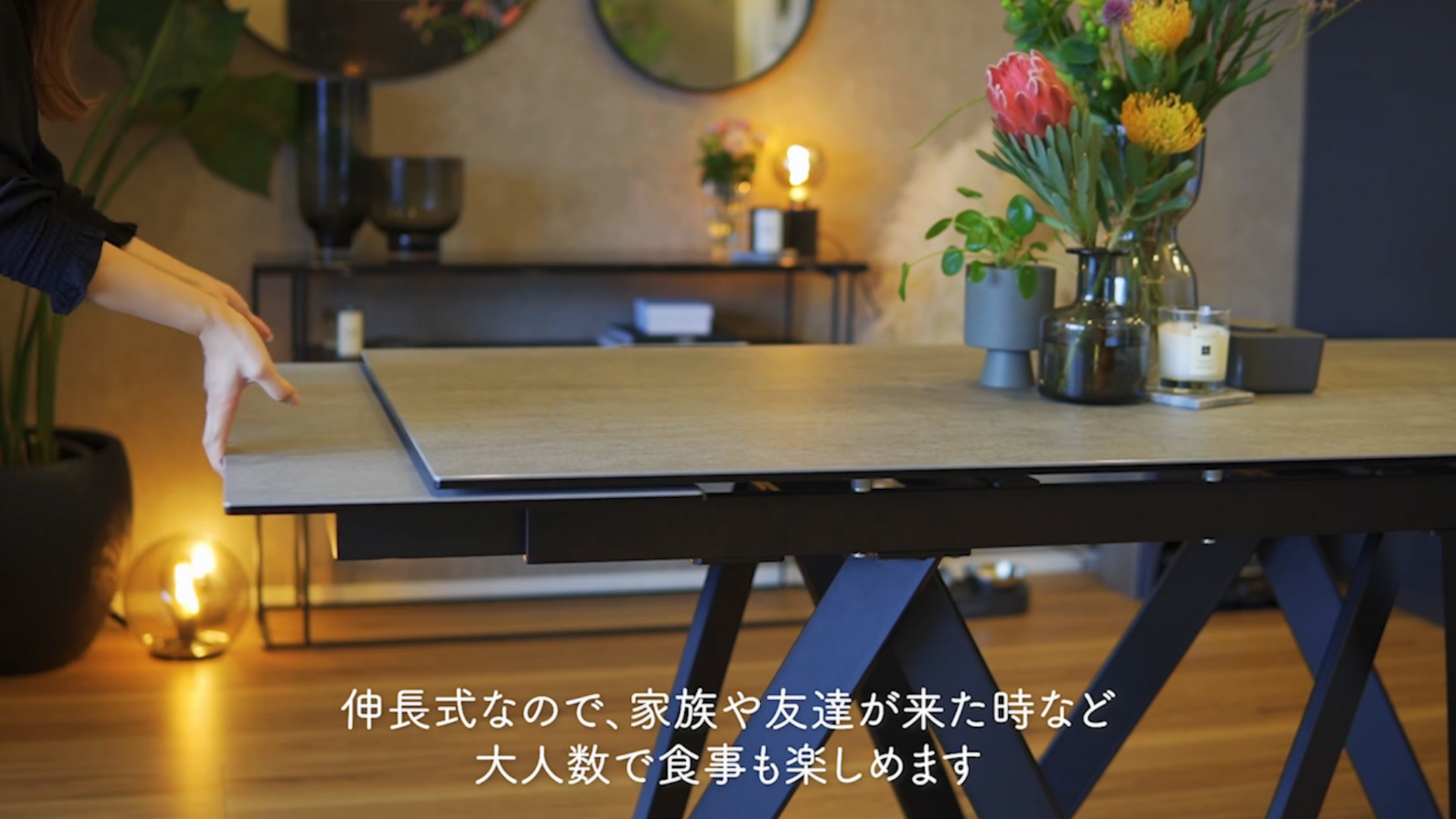 人数に合わせて調整できるおしゃれなテーブルがあるダイニング