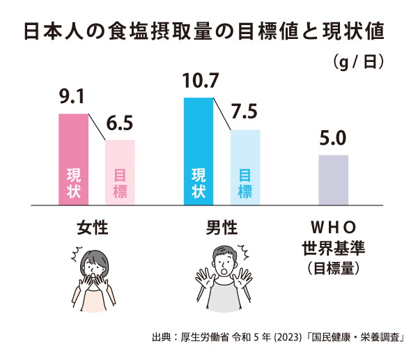 だからといって、事前に意識して塩分を多くとる必要はまったくありません。世界的に見ても、日本人の塩分摂取量は多く、食事で十分に摂取できています。そのため、夏に減塩生活を続けても、まったく問題はありません。