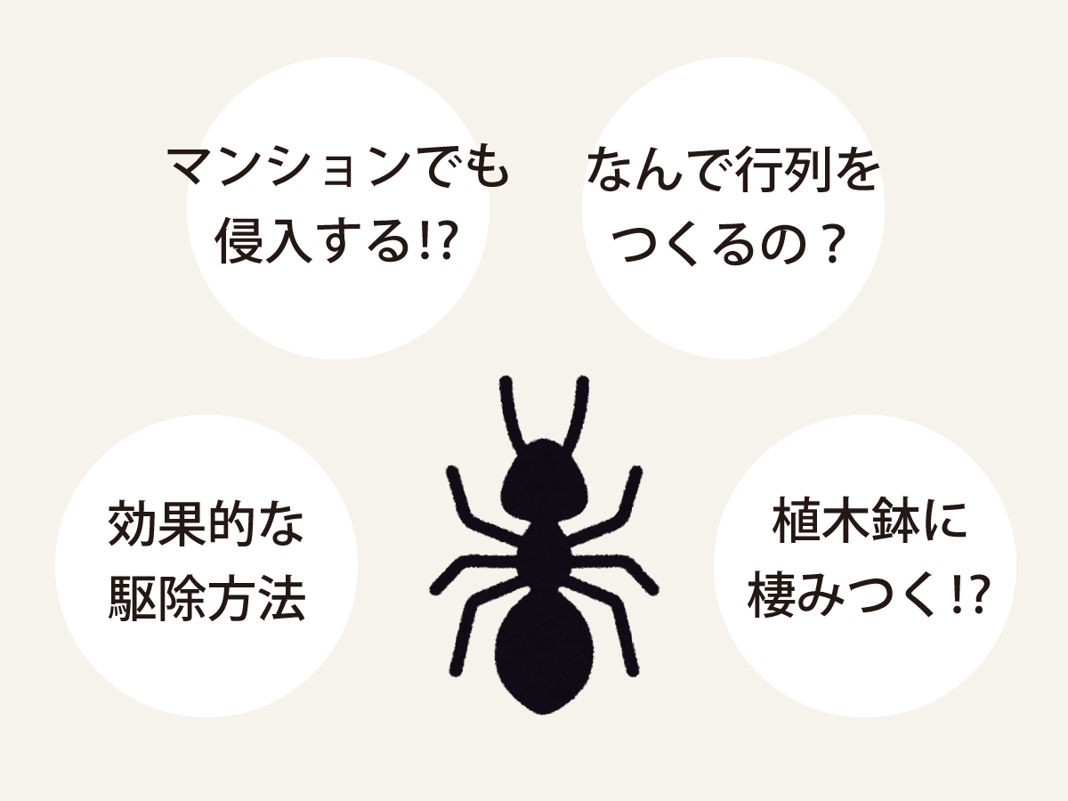 行列をなす姿にゾッとするアリ。戸建て住宅だけではなく、マンションでも1階は要注意。アリがついた植木鉢を家に持ち込むことで、侵入を許す可能性もあります。アリ対策のポイントをご紹介します。