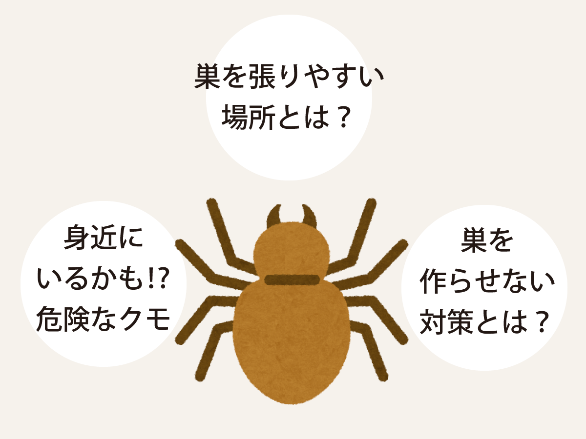 神出鬼没なクモ。油断していると、隙間を利用してあっという間に巣を張ってしまいます。巣をつくられなかったとしても、壁にいる姿を見るとギョッとしてしまうものです。そこで、侵入を許さず、巣をつくらせない方法をご紹介します。