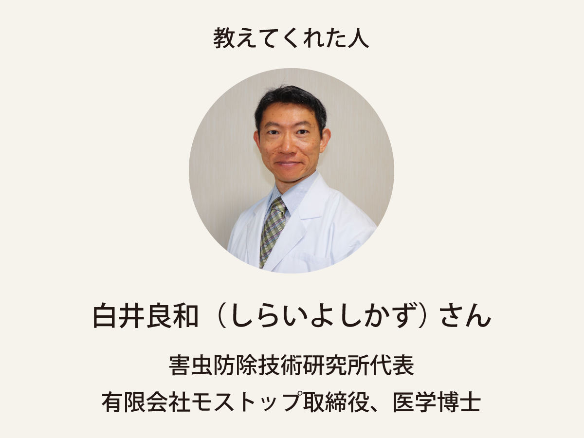 快適な暮らしを守るために、早めの対策が大切です。そこで、害虫駆除のエキスパート、有限会社モストップ取締役の白井良和さんにこれまで教えていただいた効果的な対策をまとめました。
