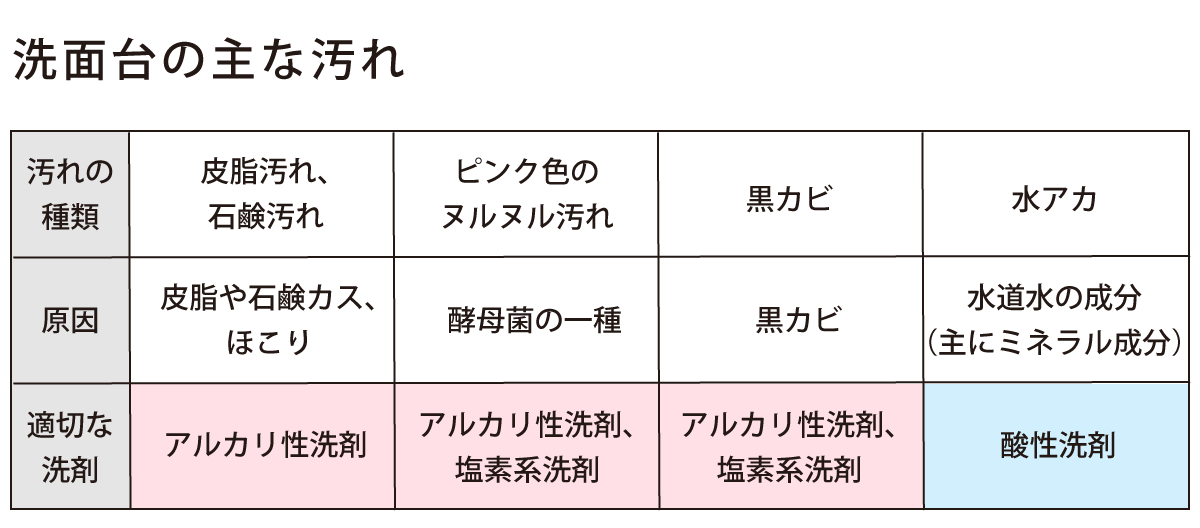 洗面台には石鹸や皮脂、水アカなどさまざまな汚れがついており、湿度や温度などで雑菌が繁殖しやすい環境です。
