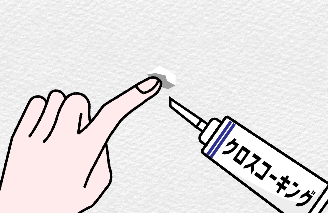 ①穴があいた部分にクロス用コーキング材を少しづつ埋め込む