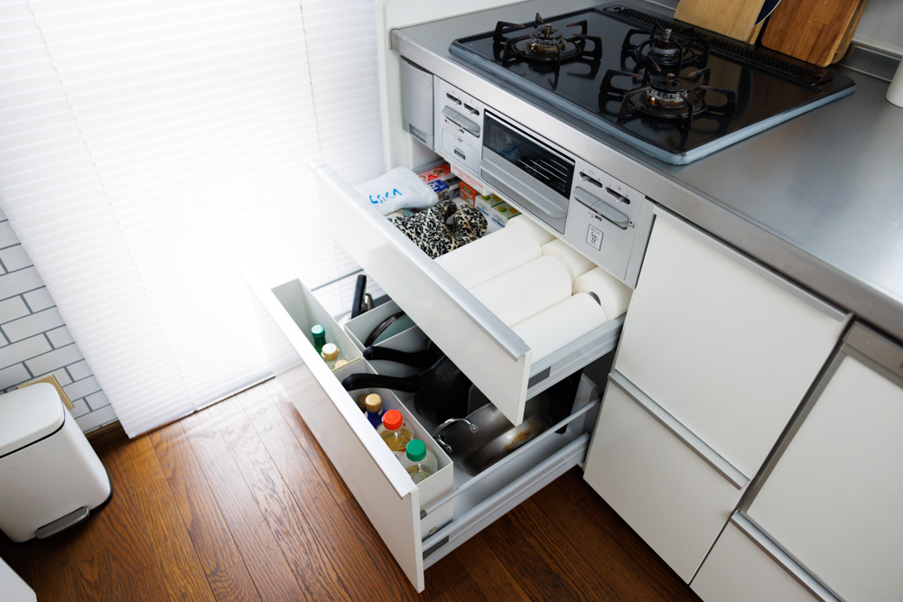 例えば野菜を洗い、水切りをしたいけど、ザルがシンクから離れた場所に置いてあったり、調理中にお玉やへらを使いたいけど、コンロから離れた引き出しに収納していたり…。無意識にキッチン内をあちこち移動していること、ありませんか?